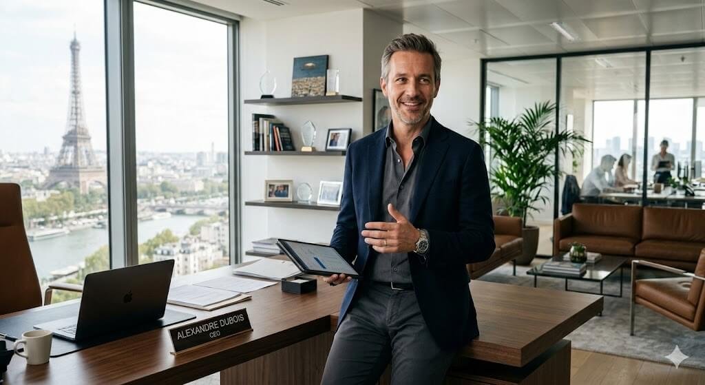 Qualité studio, montage soigné, direction artistique millimétrée. Nous visons un rendu qui soutient naturellement votre autorité de dirigeant.